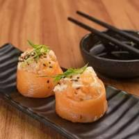 Arroz oriental envolto de Salmão, coberto por batidinha de Salmão, Cream Cheese e cebolinha. 2 unidades