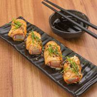 4un. Porção de Salmão Maçaricado com recheio de Kani com Cream Cheese.