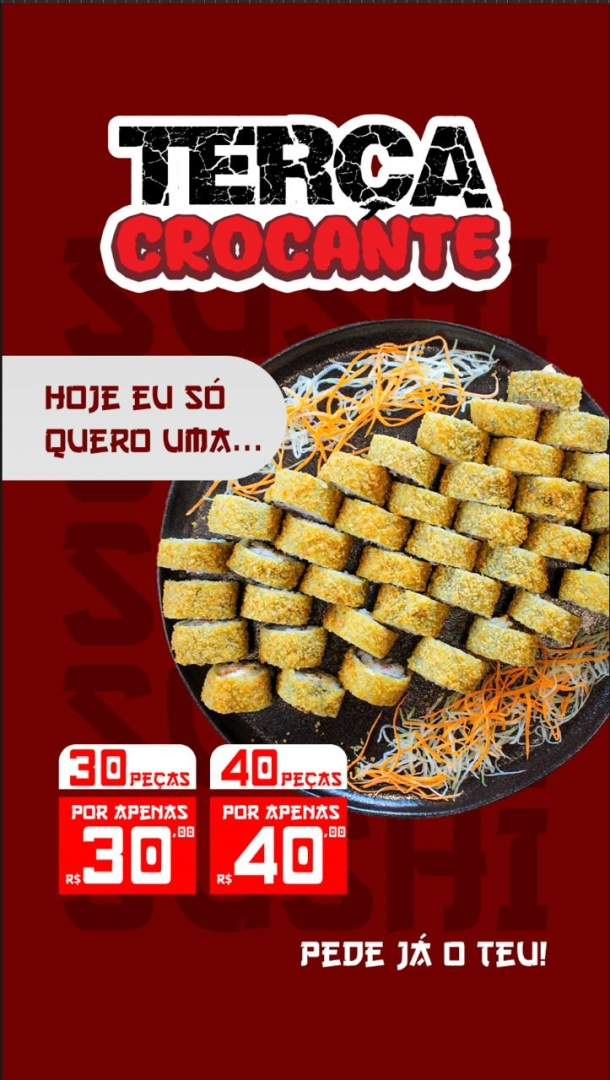 Peças tradicionais, ( Uramaki, Hossomaki, Hot ). Sabores variados preparados com todo carinho por nossos chefes para você!